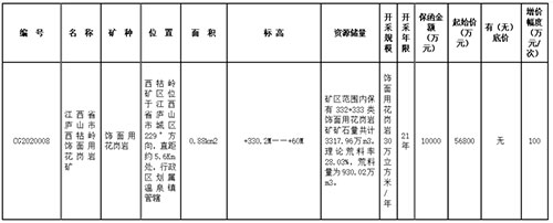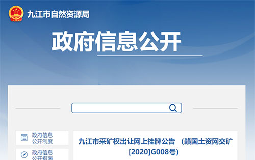 根據《江西省土地使用權和礦業權統一網上交易管理辦法》的規定,受九江市自然資源局委托,九江市國土資源交易中心以網上掛牌方式出讓以下采礦權。