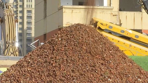 濟(jì)南唐冶安家小區(qū)建筑垃圾處理現(xiàn)場(chǎng):建筑垃圾變身花磚、混凝土原材料