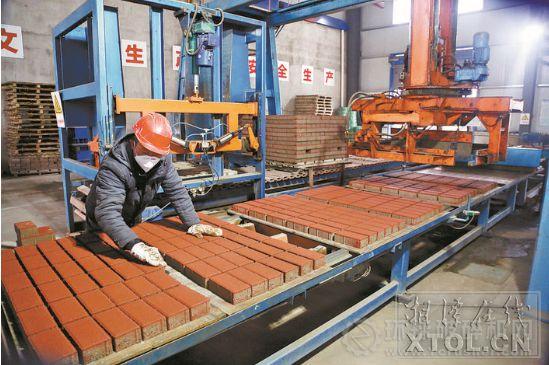 湘潭市竹埠港建筑垃圾再利用有限公司利用建筑垃圾生產吸水磚。(記者 羅韜 攝)