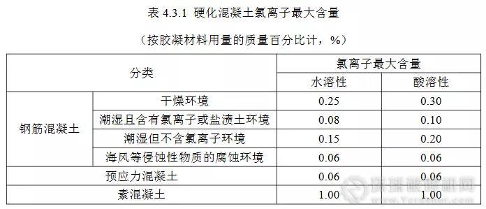 原材料氯離子含量控制規定
