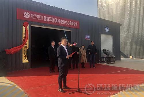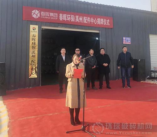 西安春暉環(huán)保副總經(jīng)理吳力宣布春暉(禹州)配件中心正式成立,并與嘉賓們共同揭牌。