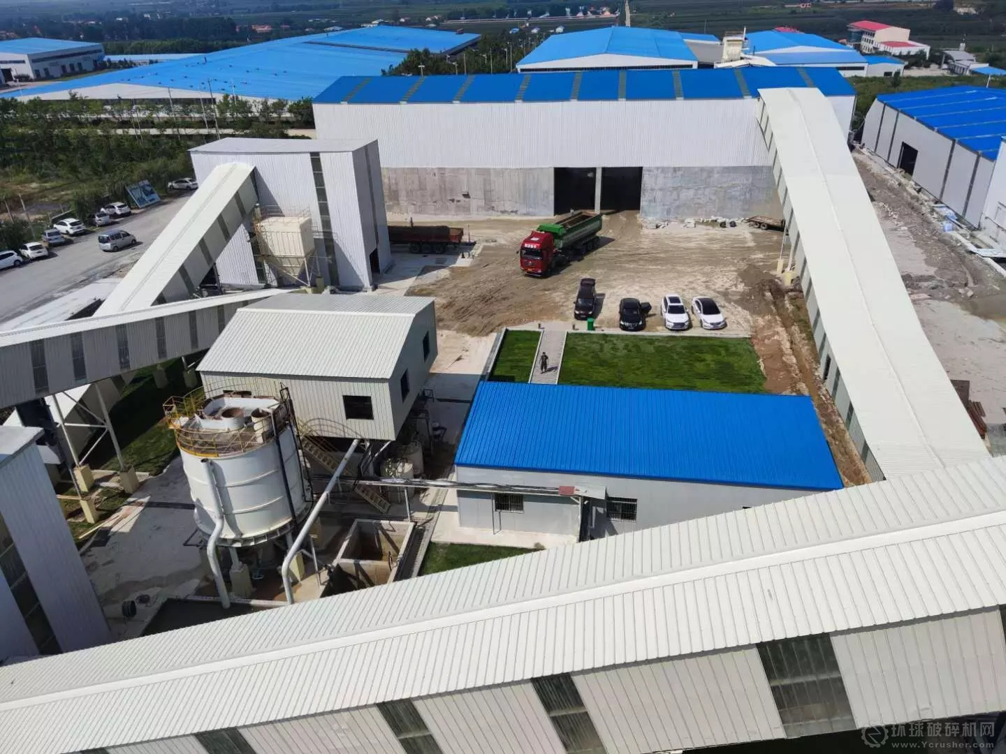 生產線所有設備配置在標準廠房車間內,高噪音地方設置降噪設施,所有帶式輸送機采用標準化通廊封閉,設備揚塵點、皮帶轉載揚塵點均配備袋式負壓除塵設備,執行最嚴格排放標準10mg/m3,一卡通智能化裝車系統、自動潤滑系統等智能化系統的運用確保生產線生產過程中可實現無人值守。