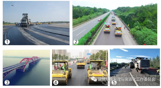 項(xiàng)目;②潭邵高速施工項(xiàng)目;③路面大修后的黑石鋪大橋;④金洲大道路面大修工程;⑤長沙繞南高速大修施工