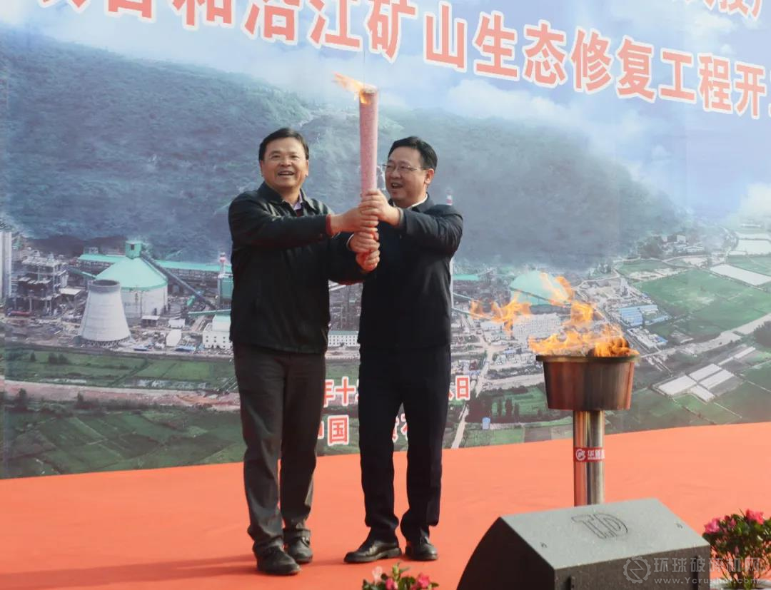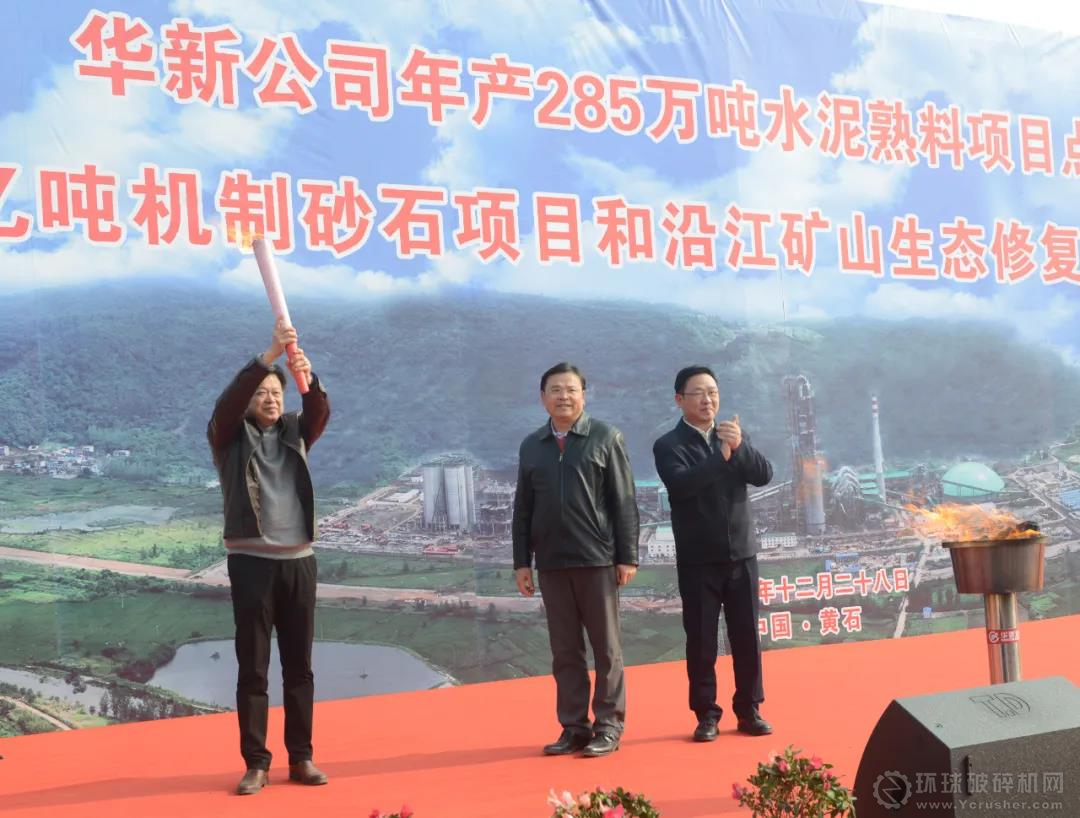 黃石市委書記董衛民宣布萬噸項目正式點火投產,億噸機制砂石項目和沿江礦山生態修復工程開工。隨后,董衛民和李葉青共同點燃投產火炬。