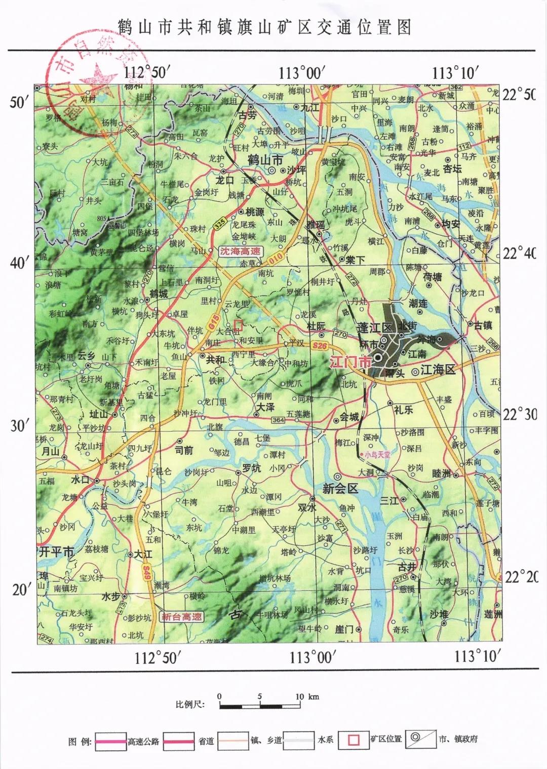 此礦權位于鶴山市區194?方向,直線距離約18.7km的里元村委會旗山(土名),礦區面積共0.6554平方公里,開采礦種建筑用花崗巖;保有資源量(332+333)6115.98萬立方米;出讓資源儲量建筑用花崗巖4648.99萬立方米;綜合利用總剝離量1676.09萬立方米;出讓年限25年;生產規模200萬立方米/年。