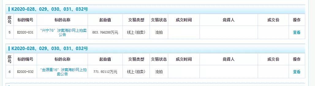 近日,廣州海警局委托廣州公共資源交易中心對一批涉案海砂共10宗進行公開拍賣。截至11日,“瑞康86”涉案海砂網上拍賣項目已流拍,而另一批正在掛牌中。