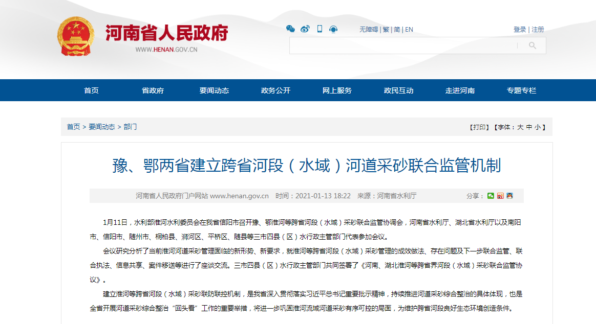 豫、鄂兩省建立跨省河段(水域)河道采砂聯合監管機制!