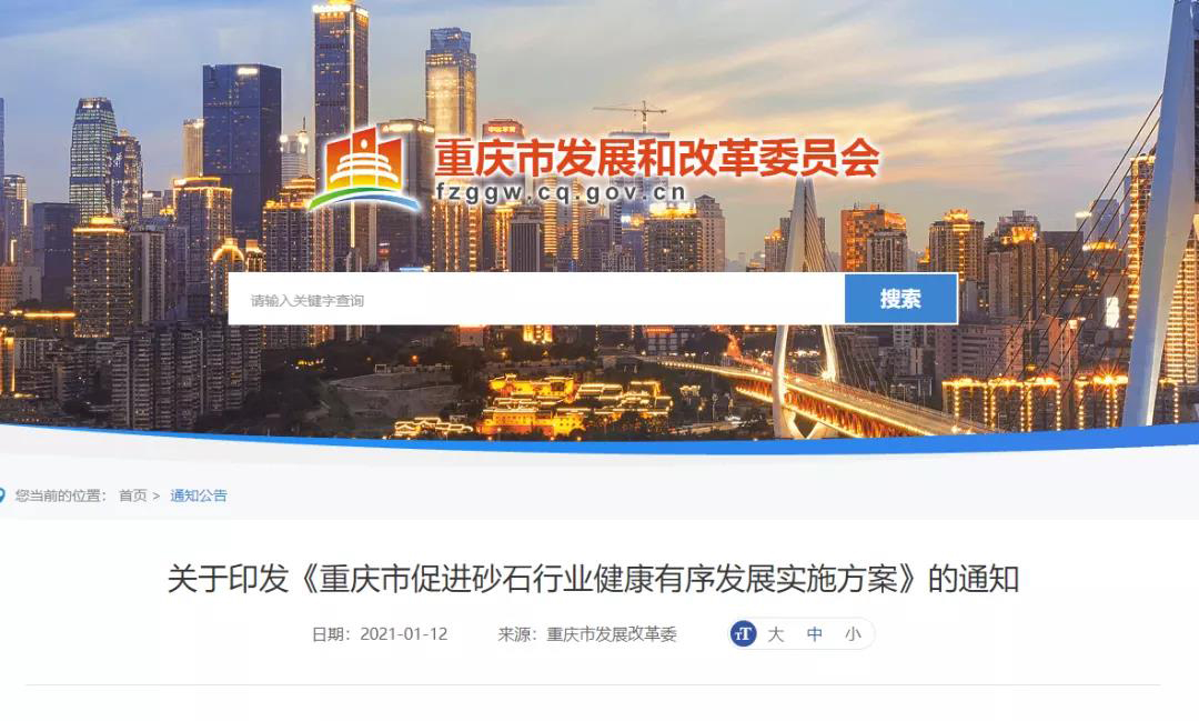 日前,重慶市發改委等17部門結合實際,聯合印發了《重慶市促進砂石行業健康有序發展實施方案》,以保障全市砂石市場供應、保持價格總體平穩、促進行業健康有序發展。