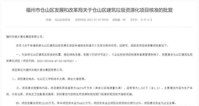 1月7日,倉山區(qū)發(fā)改局公布《關(guān)于倉山區(qū)建筑垃圾資源化項目核準(zhǔn)的批復(fù)》。為加快倉山區(qū)建筑垃圾消納處置,推動綠色發(fā)展,同意建設(shè)倉山區(qū)建筑垃圾資源化項目。