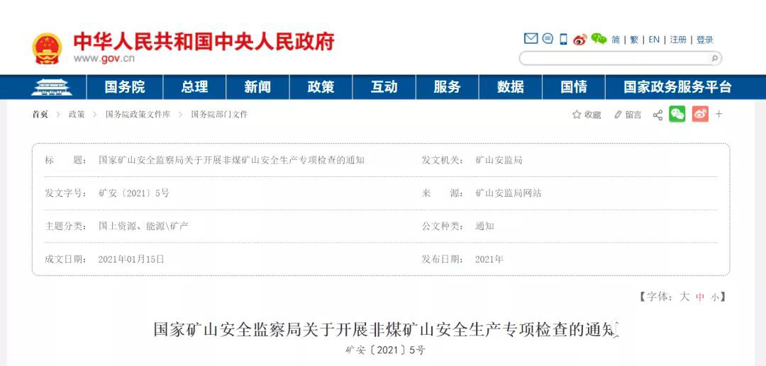 據(jù)了解,通知指出1-2月要重點(diǎn)檢查地下礦山、高陡邊坡露天礦山、尾礦庫“頭頂庫”、基建礦山。這意味著,國家礦山安全監(jiān)察局將在全國開展