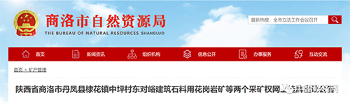 據悉,近日,商洛市自然資源局發布采礦權出讓公告,擬將陜西省商洛市丹鳳縣范圍內的兩宗建筑石料用花崗巖礦采礦權以網上掛牌方式出讓。具體事宜如下: