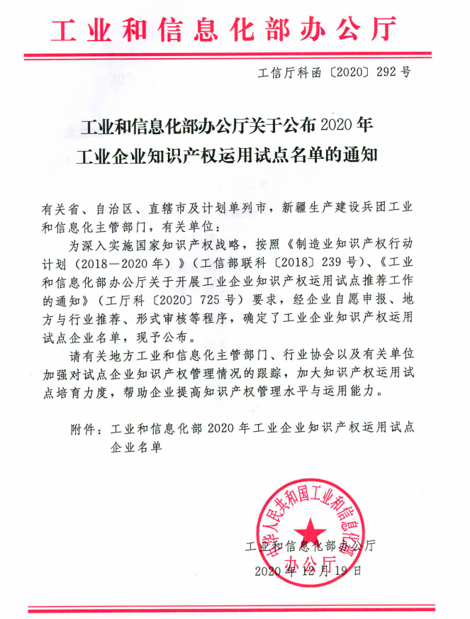 這是工信部為貫徹落實國家知識產權戰略,按照《制造業知識產權行動計劃(2018-2020年)》(工信部聯科〔2018〕239號)、《工業和信息化部辦公廳關于開展工業企業知識產權運用試點推薦工作的通知》(工廳科〔2020〕725號)工作部署,推進工業企業知識產權運用發展,在國內工業企業知識產權運用領域開展的官方權威征集。通過實施工業企業知識產權運用試點企業模式,可有效提升知識產權運用試點培育力度,加強企業知識產權管理水平與運用能力。