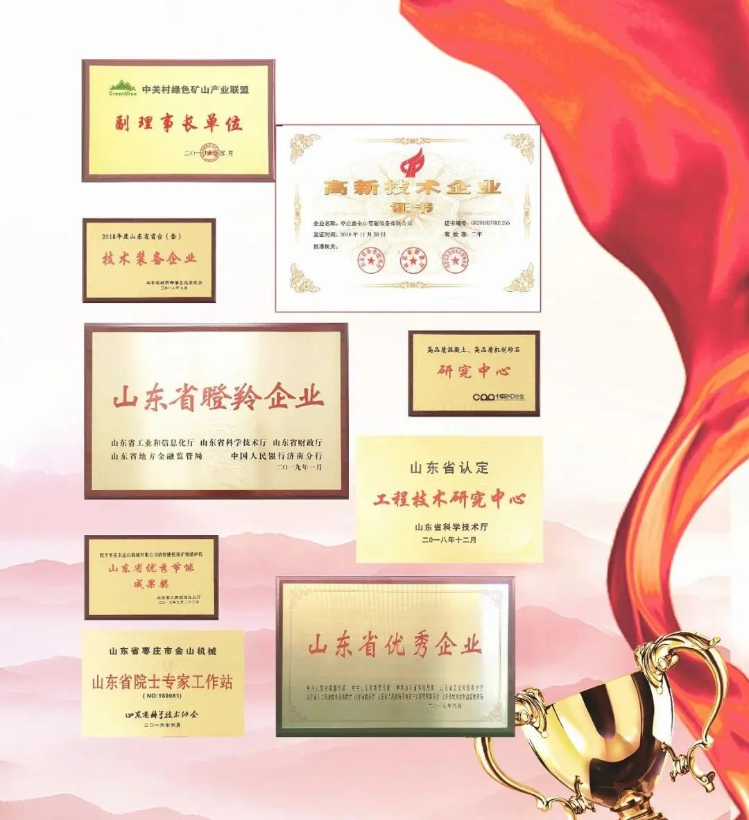 礦山科學技術研發類一等獎,山東省科學技術二等獎,山東省優質品牌產品、知名品牌產品,工信部專精特新“小巨人”企業,山東省瞪羚企業等榮譽。