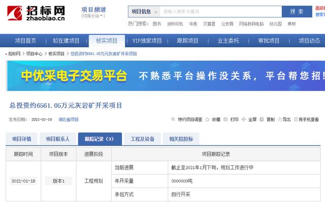 湖北一處年開采300萬噸的建筑石料用灰巖礦開采項目規劃工作進行中!