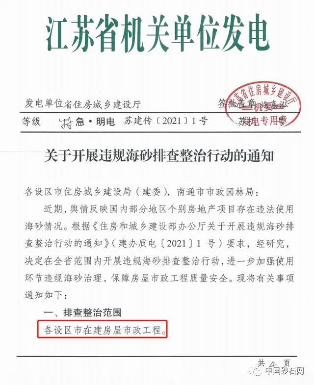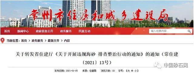 近日,江蘇省常州市住建局轉發省住建廳《關于開展違規海砂排查整治行動的通知》的通知。