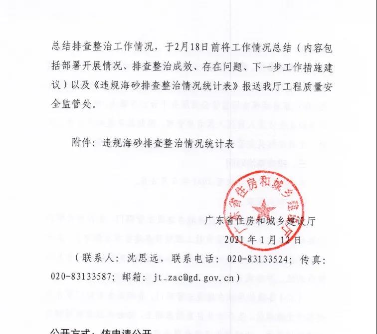 現將《廣東省住房和城鄉建設廳關于開展違規海砂排查整治行動的通知》(粵建質函〔2021〕20號)轉發你們,請抓好落實,并將有關工作要求通知如下: