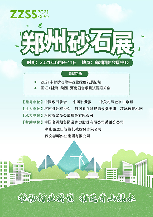 “2021中國(鄭州)國際砂石及尾礦與建筑固廢處理技術展覽會暨2021中部砂石骨料行業綠色發展論壇”將于6月9-11日在鄭州國際會展中心舉辦。本屆展會以“綠水青山就是金山銀山”為理念,重點展示砂石環保加工設備、尾礦后期環境治理、建筑垃圾回收再利用等行業先進技術和設備;展會現場將匯聚百家行業知名廠家,彰顯中國智造助力行業綠色發展。