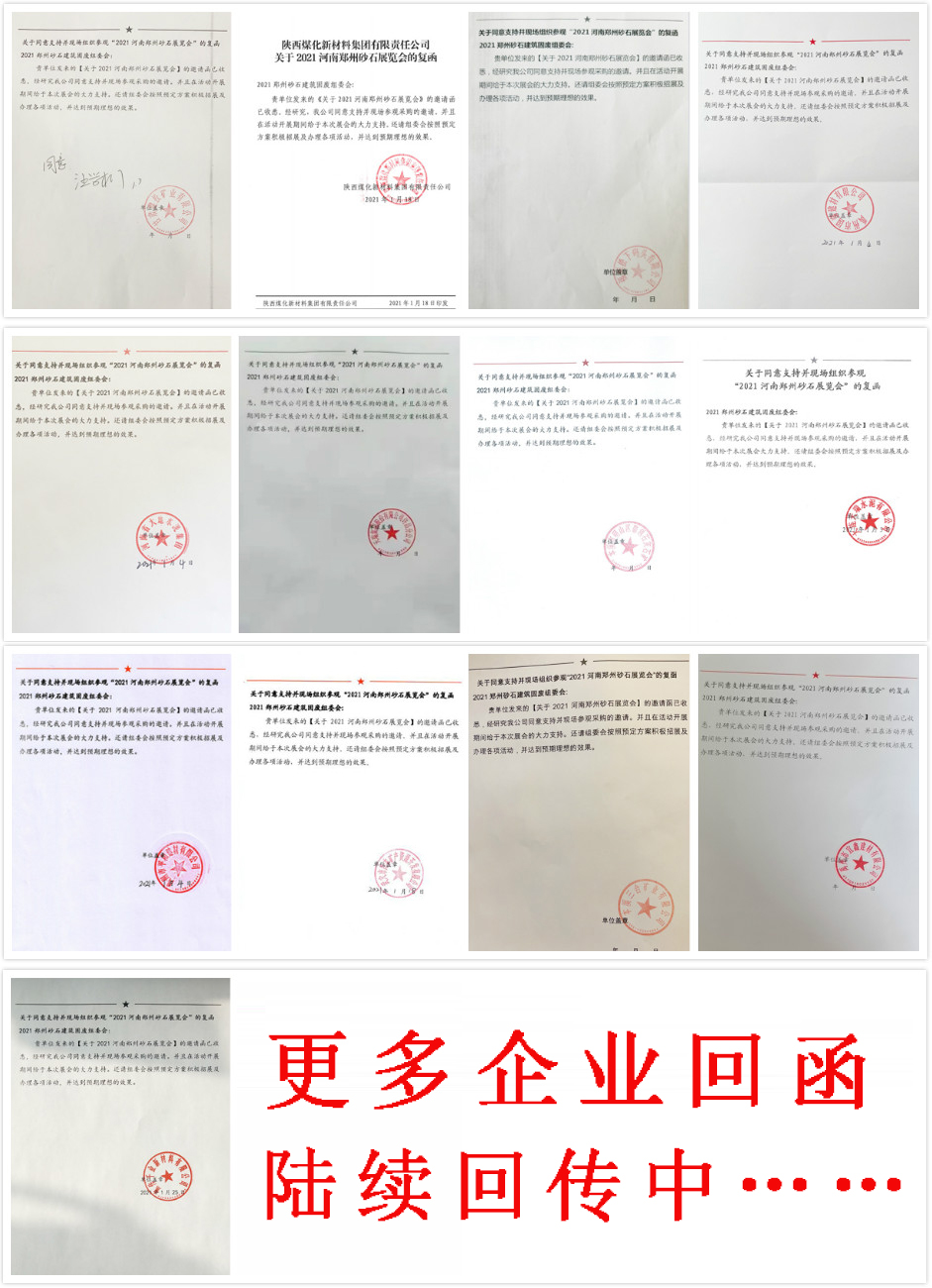 據了解,展會目前得到了各地行業協會相關組織、媒體平臺、知名企業、權威專家等多方的大力支持與幫助,組委會收到了甘肅建投、陜煤新材、福州松下碼頭、禹州國泰建材、 武穴民本礦業、河南大地水泥、大連天瑞水泥、焦作千業新材料等十余家企業的支持單位回函,更多支持單位回函在陸續回傳中。