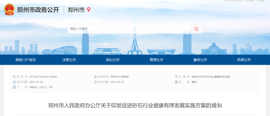 鄭州市作為中部地區重要城市,該文件的發布對全國大中城市的砂石規劃建設和保障供給、穩定價格具有重要參考價值!