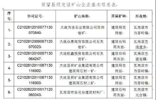 對保留的6家縣級發證的礦山企業,《公告》要求屬地鄉鎮(街道)、市政府相關部門要嚴格監管,提高準入門檻,確保實現礦業綠色、環保、安全、可持續發展。采礦權審批必須按規定報市政府常務會議審議,礦山企業必須按遼寧省、大連市要求達到綠色礦山標準。