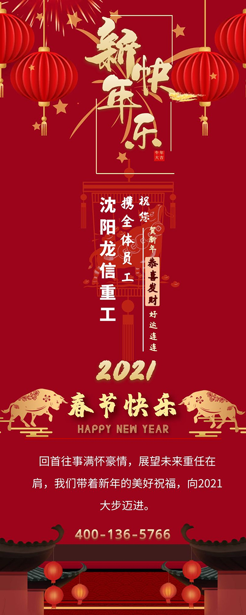 玉鼠辭舊歲,金牛迎新春。值此新春佳節之際,龍信重工祝愿大家新春愉快,萬事如意,闔家歡樂!新年伊始,萬象更新,龍信重工也將揭開2021年嶄新的一頁!