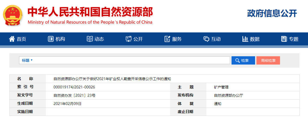 自然資源部辦公廳關于做好2021年礦業權人勘查開采信息公示工作的通知