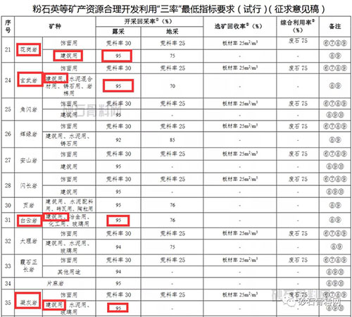 近日,自然資源部辦公廳關于征求粉石英等礦產資源合理開發利用“三率”最低指標要求意見的函,對砂石生產涉及的凝灰巖、花崗巖等部分礦種最低回采率做出了要求。