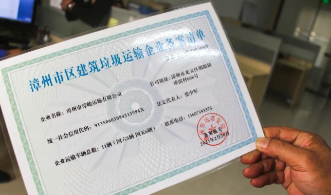 2月24日下午,漳州市城市管理局執(zhí)法人員向漳州市漳峻運輸有限公司發(fā)放《漳州市建筑垃圾運輸企業(yè)備案清單》,至此,薌城、龍文兩區(qū)運輸企業(yè)及運輸車輛全部完成備案,實現(xiàn)運輸企業(yè)及車輛入庫率100%。