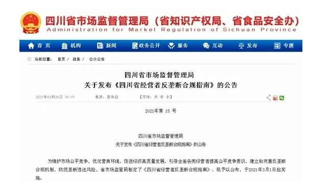 《指南》由四川省市場監督管理局負責解釋,自今年3月1日起實施。