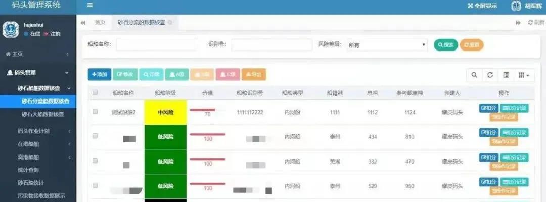 ——透明、公開“示信”。砂石船舶入庫后,系統會通過相關條件智能判定,初步篩選出三無船舶以及證書過期等低標準船舶。而對入庫的砂石船舶,后期海事部門將按照《江蘇海事局信用管理辦法》對船舶實施黑、黃、綠“三色”管理,對發生一般失信行為和嚴重失信行為的船舶分別按照“黃名單”和“黑名單”船舶進行相應管理,同時,將江蘇海事局已經發布的轄區“黑名單”船舶在系統內進行公示,提醒碼頭方和貨主方審慎選船。