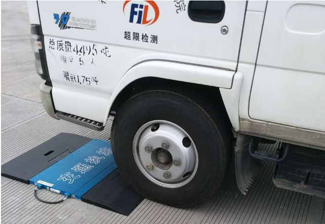 圖為正使用STW-18便攜式稱重檢測設備進行流動超限超載檢測