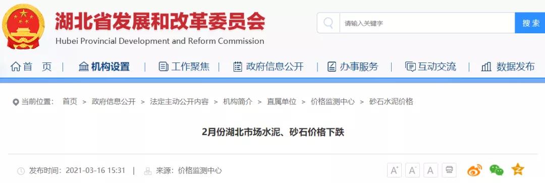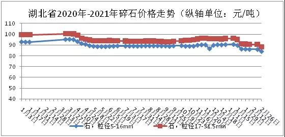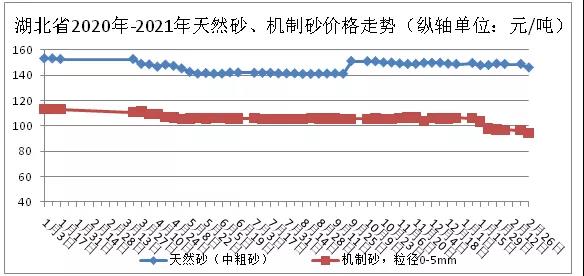 湖北省2月份天然砂、機制砂、碎石市場價格均不同幅度下跌