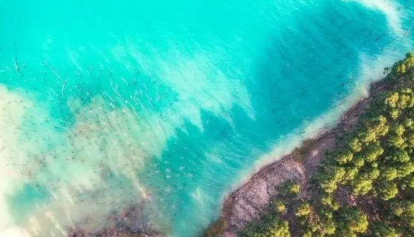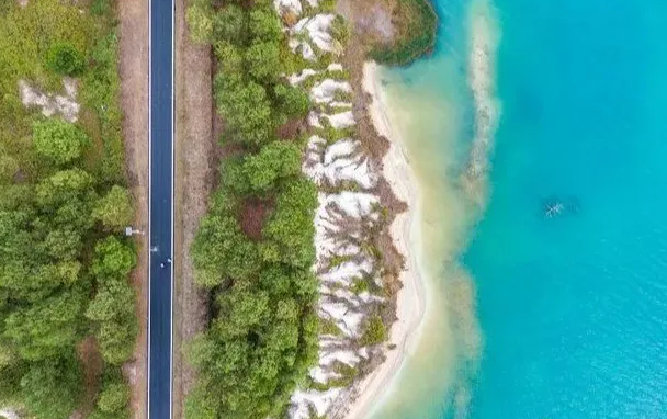 從天空俯瞰茂名,最耀眼的莫過于城區西北角那一大片碧藍的湖泊。“那水像馬爾代夫的海那般清澈碧藍。” 去過那里的游人都會發出這種感慨。湖水那種迷人的碧藍色源于深水中礦物質豐富。