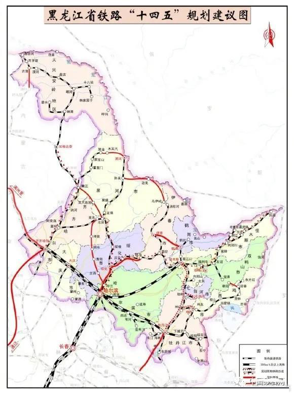 2、新建改造普速鐵路1250公里。主要包括建成北黑、佳鶴、富加、哈綏北(龍鎮)等鐵路改造和寶清至朝陽段鐵路等工程,謀劃佳木斯至同江(撫遠)鐵路改造、綏化至佳木斯鐵路改造、新建漠河至滿歸鐵路等。
