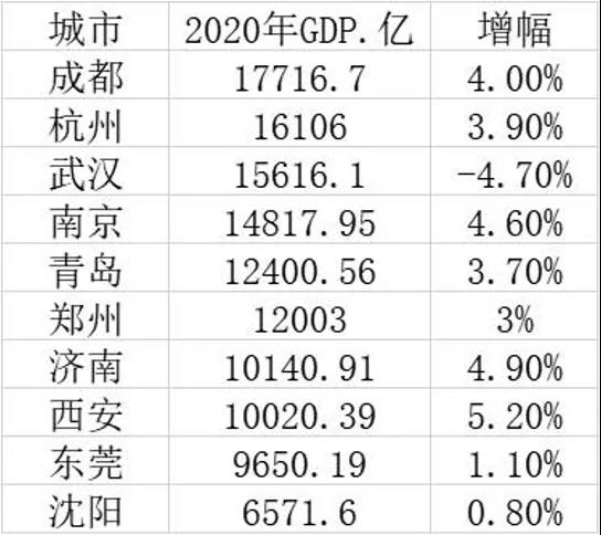 據了解,東莞、武漢、成都、杭州、南京、鄭州、西安、濟南、沈陽和青島這10個特大城市中,有8個城市2020年GDP突破了萬億元大關,位居第一的成都達到1.77萬億。