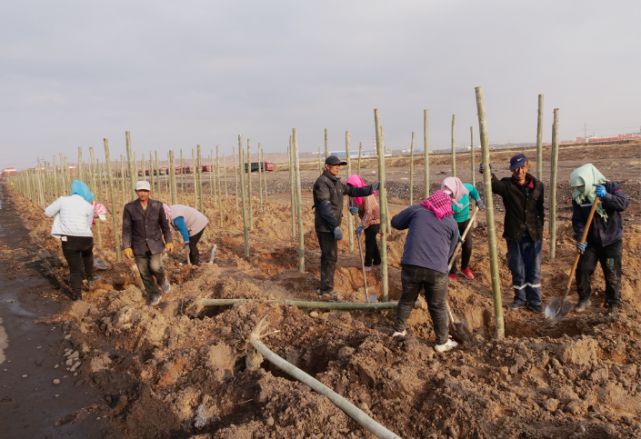 鄂爾多斯正豐礦業有限責任公司排土場現場,呈現在記者眼前的是覆土、播撒種子、鋪草簾、固定草簾的忙碌場景,工人們相互協作,各司其職,搶抓天氣回暖之際進行排土場綠化工作。據了解,正豐礦業有限責任公司今年的綠化面積大約在四萬平方米左右,該公司嚴格按照“鄂托克旗2021年綠色礦山建設”設計的標準,利用雙欣電廠粉煤灰自有膠凝性質的特點,使用重量為1噸的自制滾筒由鏟車帶動碾壓密實,之后覆土播種,目前已完成綠化面積約2萬平米左右。