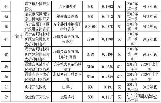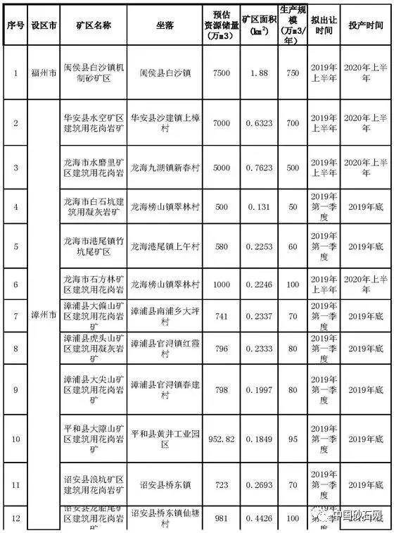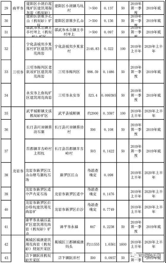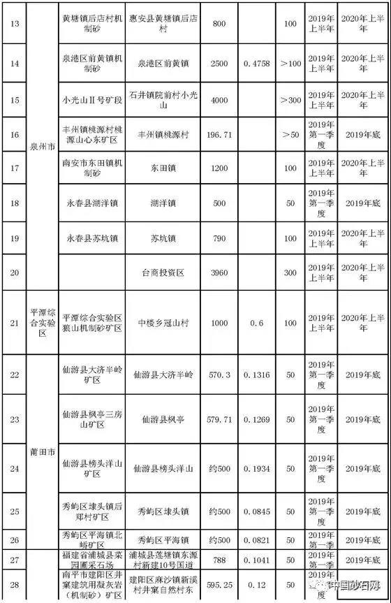 《關于加快推進機制砂項目配套礦山采礦權出讓工作的通知》涉及的52家機制砂礦區名單