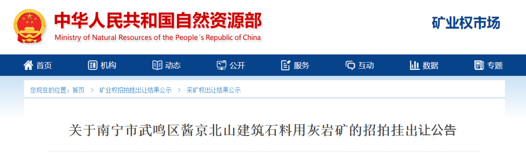 南寧市武鳴區醬京北山建筑石料用灰巖礦采礦權出讓成交結果公示