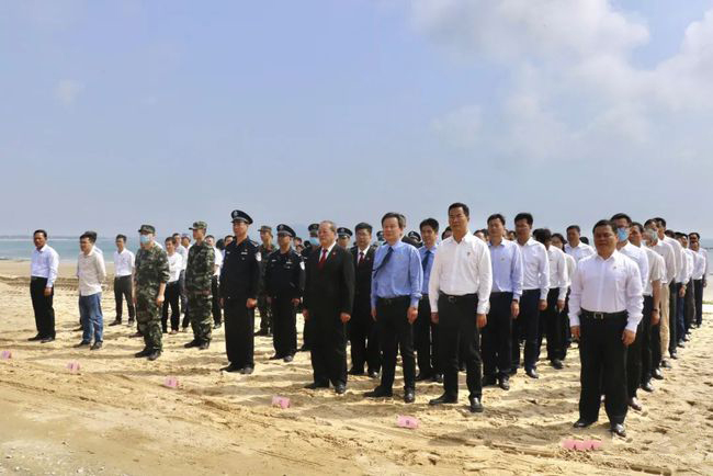 在縣委書記洪泰偉、縣長黃鍵鵬、縣人大常委會主任柳亞殊、縣委副書記李斌等縣領導的共同見證下,我縣組織將近階段依法沒收的一批非法盜采的海砂共計約7800立方米,在烏礁灣進行集中回填。