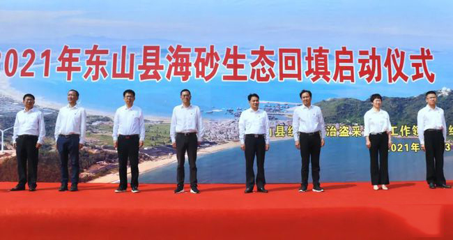 為積極踐行“綠水青山就是金山銀山”理念,加快推進海洋生態綜合整治工作,4月13日上午,我縣舉行2021年東山縣海砂生態回填啟動儀式,將依法沒收的7800立方米海砂回填烏礁灣。