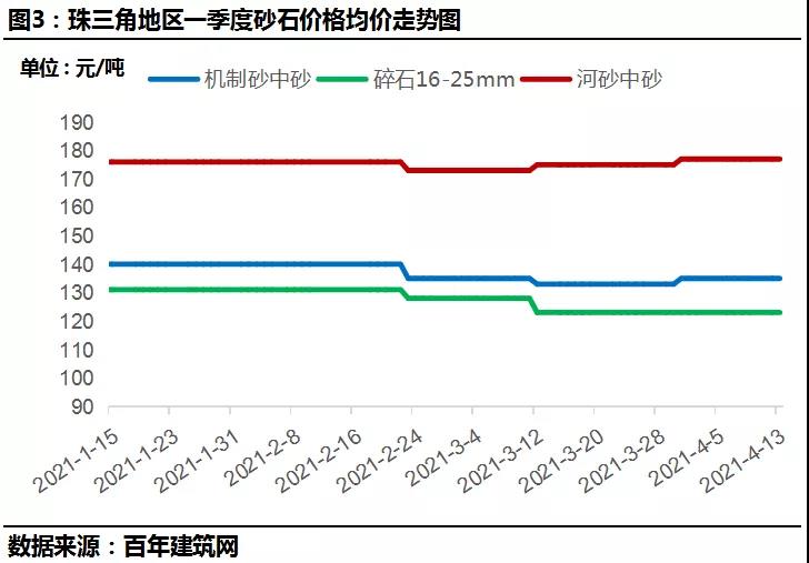 礦山建設,嚴厲打擊非法違法河砂開采行為,市場天然砂供應或將受到一定影響,屆時市場上機制砂需求將得到一定提升。筆者預計后期珠三角地區砂石供應或將偏緊,價格或將穩中偏強運行。