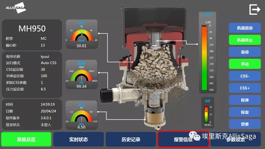 排礦口自動(dòng)調(diào)節(jié),實(shí)時(shí)監(jiān)控運(yùn)行狀態(tài)易于實(shí)現(xiàn)與客戶中控系統(tǒng)通訊;