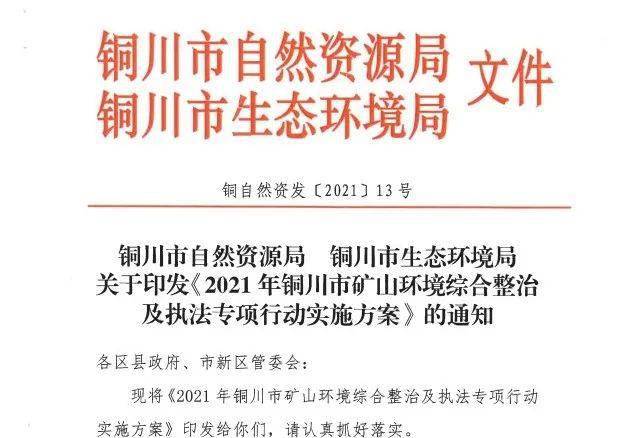 為深入落實中、省對礦山企業生態環境保護各項要求,持續鞏固中央和省委生態環境保護督察整改成果,全力推進礦山企業生態環境不斷好轉,近日,市自然資源局和市生態環境局聯合印發了《2021年銅川市礦山環境綜合整治及執法專項行動實施方案》,并于4月19日下午召開了銅川市礦山環境綜合整治及執法專項行動啟動會,市自然資源局、市生態環境局分管領導,以及參與本次執法專項行動的全體同志參加會議。