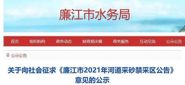 關于向社會征求《廉江市2021年河道采砂禁采區公告》意見的公示廉江市2021年河道采砂禁采區公告
