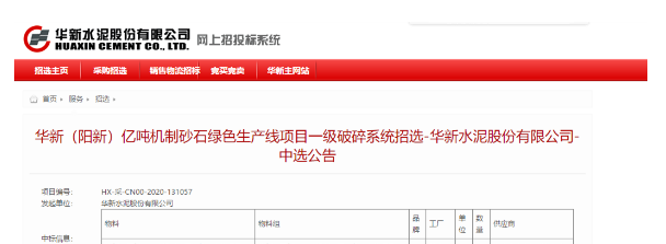 破碎機已成功運用于華新水泥達州渠縣、襄陽南漳、重慶參天等多個項目,持續為華新水泥砂石骨料事業作出更大貢獻。