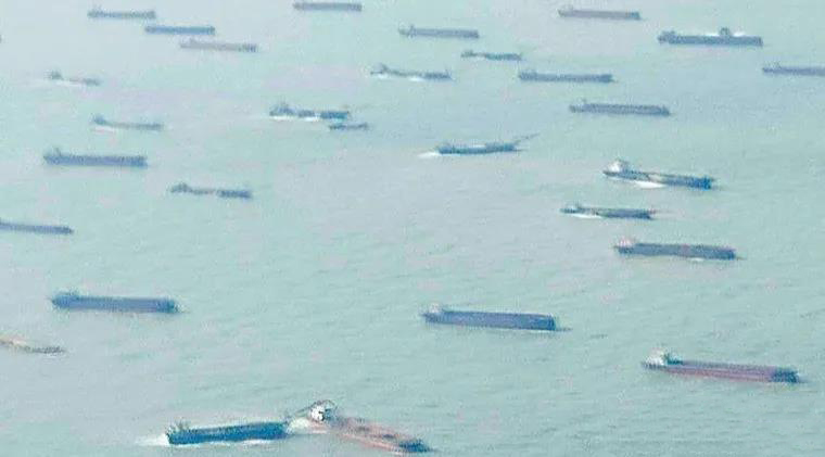 抽砂船密密麻麻布滿馬祖海域,而澎湖海域的臺灣灘狀況更嚴重。