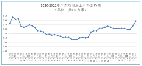 因供應商提價,4月中旬全省各區域水泥購進價格持續上升,全省平均價為每噸580元,環比上升3.0%。其中,珠三角、粵東、粵北和粵西地區水泥平均購進價分別為每噸611元、559元、537元和500元,環比分別上升3.12%、7.97%、3.97%和0.9%。4月中旬全省混凝土平均批發價為每立方米548元,環比上升2.0%。