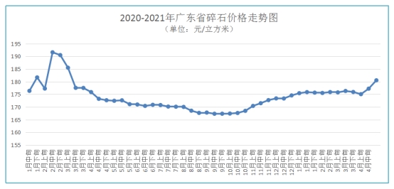 據監測,4月中旬全省碎石平均購進價為每立方米181元,環比上升1.86%。其中,珠三角和粵北地區碎石平均購進價分別為每立方米201元和149元,環比分別上升2.41%和3.96%;粵東地區碎石平均購進價為每立方米199元,環比微降0.28%;粵西地區碎石平均購進價為每立方米135元,環比持平。4月中旬機制砂平均購進價為每立方米165元,環比上升2.45%。