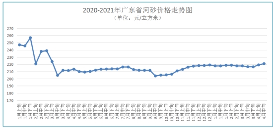 據監測,4月中旬全省河砂平均購進價為每立方米221元,環比(與4月上旬比,下同)上升0.79%。其中,珠三角、粵東和粵北地區河砂平均購進價分別為每立方米248元、245元和195元,環比分別上升1.26%、0.25%和0.93%;粵西地區河砂平均購進價為每立方米200元,環比持平。珠三角地區海砂(淡化處理)平均購進價為每立方米266元,環比上升2.11%。