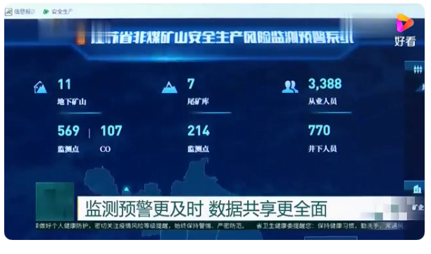 江蘇省非煤礦山安全生產風險監測預警系統日前正式上線,一期覆蓋全省11個金屬非金屬地下礦山和7個尾礦庫。據了解,該系統具有安全風險快速感知、實時監測、超前預警、聯動處置和系統評估等功能,能實現非煤 礦山基礎數據、感知數據和監管執法數據共享。